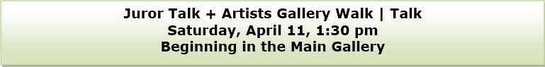 Don't miss the in person Juror's Talk and Artists Gallery Walk the afternoon following the opening, beginning at 1:30 pm on Saturday, April 11. Juror Scott Shields will share about his work, experience jurying the show and his selections, with the artists in the show who are available to speak to their selected works.