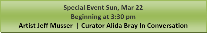 A Special Kind of Existence will conclude with a program on Sunday, March 22, beginning at 3:30 pm when the artist and Sanchez Art Center Curatorial Director Alida Bray will be together in conversation, followed with time for attendees to ask questions about Musser's work and process.