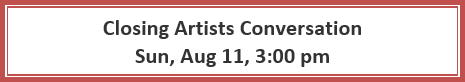 Providing the community with the opportunity to hear from the artists about their work and processes, All Angles will conclude with an artists' talk on Sunday, Aug 11, beginning at 3:00 pm. The opening, talks, and gallery visits are free as part of the Center's focus on "Creating Community through Art".