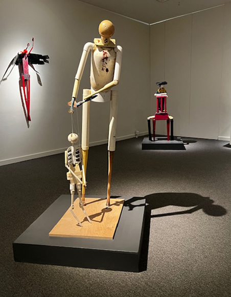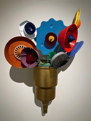 | Jerry Ross Barrish, born in San Francisco in 1939, moved to Pacifica in the early 1980's and started to pick up plastic "garbage" from the beach by his home. He began to see images in the forms of the found objects that led him to find his unique voice by creating sculptures out of it. The assemblage/constructions largely made from this undervalued resource, capture gesture, form and movement, bringing life to the refuse that is the essence of Barrish's art. Barrish notes that "Sometimes I set out to make an image and actually search for the pieces to complete the idea, but more often it's the found object that dictates what I'm going to do."Though a preconceived vision offers a structured direction, he further notes "inspiration and freedom come from letting this discarded stuff provide the image itself."