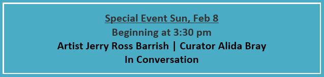 Everyday Inspiration will conclude with a program on Sunday, February 8, beginning at 3:30 pm when the artist and curator Alida Bray will be together in conversation, followed with time for attendees to ask questions about Barrish's work and medium.